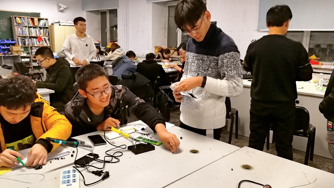 整个培训过程由E唯协会骨干全程指导,参加培训的同学们积极讨论并自己设计电路、动手焊接。