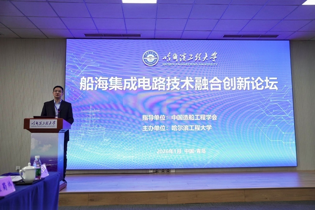 1月26日,学校在青岛创新发展基地举办“船海集成电路技术融合创新论坛”。来自中国船舶集团、中国电子科技集团、中国航天科技集团、中国兵器工业集团以及国内53所高校、研究所和企业的百余位专家学者,围绕船海专用集成电路设计、高可靠性芯片封装测试、海洋环境适应性MEMS传感器、智能船舶核心芯片等前沿方向进行深入交流。同时,推进中国造船工程学会船海装备集成电路专业委员会(以下简称“专委会”)筹备工作。