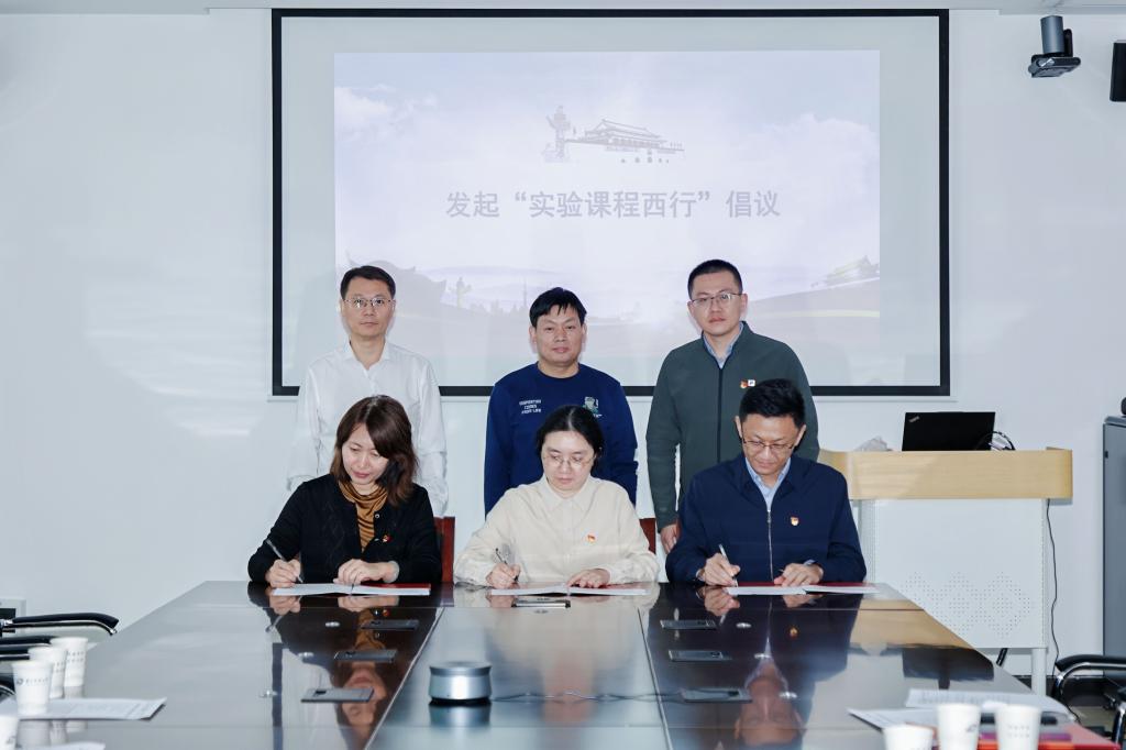 签约仪式后,三方共同发起《实验教学数字化及个性化评价体系》共同体“实验课程西行”倡议书,向全国各高等院校、科研院所、教育机构及全体教育工作者发出号召,呼吁各方坚守教育初心,凝聚实验课西行共识;依托共同体平台精准对接西部院校需求,推动优质实验内容西行;创新教学方法、强化数字赋能,助力西部实验教学模式升级;共享优质资源、搭建协同桥梁,构建资源共建共享体系;聚焦师资培育、完善评价体系,夯实西部实验教学人才基础,以实际行动促进东西部教育资源共享,为建设教育强国、推动区域协调发展贡献力量。